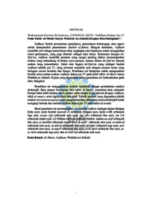 Istifham berarti permintaan penjelasan, permintaan keterangan, atau upaya untuk memperoleh pemahaman (thalab al-fahm). Dengan demikian, istifham memiliki arti sebagai permintaan akan ungkapan atau kejelasan untuk mengajukan suatu pertanyaan, yang juga dikenal sebagai kata tanya. Kaitannya dengan Al-Qur’an, istifham memiliki peranan yang sangat penting dalam menyampaikan makna yang terkandung di dalam ayat-ayatnya, karena dalam Al-Qur’an banyak makna yang tersembunyi. Salah satu bagian Al-Qur’an yang terdapat bentuk istifham adalah juz 27, yang memuat sejumlah ayat dengan nuansa tanya yang beragam secara konteks dan fungsi. Penelitian ini bertujuan untuk menganalisis bentuk serta makna-makna istifham dalam juz 27 pada kitab tafsir Al-Munir karya Wahbah az-Zuhaili. Kajian yang digunakan dalam penelitian ini berlandaskan pada ilmu balaghah. Penelitian ini menggunakan metode kualitatif dengan pendekatan analisis deskriptif. Data primer bersumber dari tafsir Al-Munir, sementara data sekunder berupa buku-buku bahasa Arab,jurnal, serta skripsi yang relevan dengan istifham,tafsir al-munir, serta kajian ilmu balaghah. Teknik analisis yang digunakan adalah analisis isi (content analysis) dan pengolahan data dilakukan secara deskriptif untuk mengkaji bentuk dan makna istifham dalam juz 27 pada tafsir Al-munir.Hasil penelitian ini menunjukkan: (1) bentuk istifham terdapat dalam delapan belas ayat, yaitu bentuk hamzah (أ) sebanyak delapan ayat, kaifa ( َكيف) sebanyak tiga ayat, ayyun (ايّ) sebanyak satu ayat, hal ( ْهل) sebanyak dua ayat, ma (ما) sebanyak empat ayat. (2) Makna istifham, sebagai berikut: makna an-nafi sebanyak dua ayat, at-taubikh sebanyak empat ayat, at-taqri’ sebanyak satu ayat, at-takhwif sebanyak satu ayat, at-tahwil sebanyak dua ayat, al-inkar sebanyak tiga ayat, amr sebanyak satu ayat, at-taqrir sebanyak dua ayat, at-ta’ajub sebanyak dua ayat, at-ta’zhim sebanyak tiga ayat, dan al-istib’ad sebanyak satu ayat.
