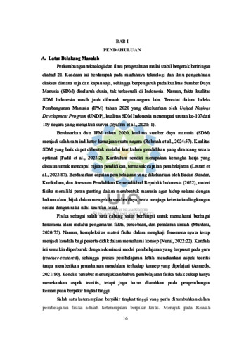 Uncontrolled Keywords: E-LKPD; Etnosains; Keterampilan berpikir kritis; Problem-Based Learning (PBL)