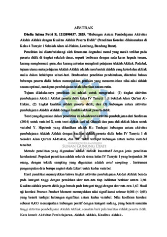Rusbianto, Dhelia Salma Putri (2025) Hubungan antara aktivitas pembelajaran Akidah Akhlak dengan kualitas akhlak peserta didik. Sarjana thesis, UIN SUNAN GUNUNG DJATI BANDUNG.