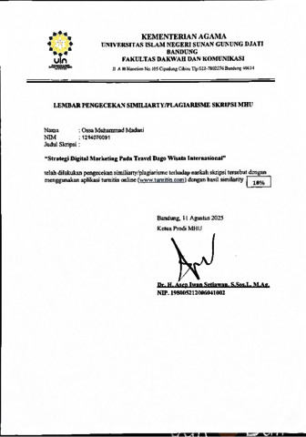 Madani, Ossa Muhammad (2025) Strategi digital marketing pada Travel Dago Wisata Internasional: Penelitian di PT. Dago Wisata Internasional. Sarjana thesis, UIN Sunan Gunung Djati.