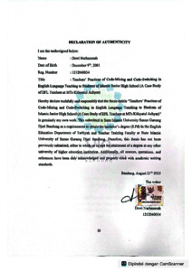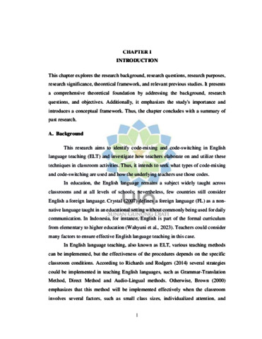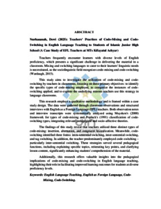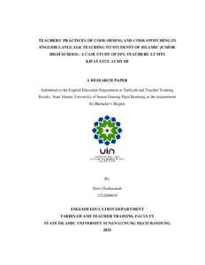 Nurhasanah, Dewi (2025) Teachers’ practices of code-mixing and code-switching in English language teaching to students of islamic junior high school: A case study of EFL teachers at MTs Kifayatul Achyar. Sarjana thesis, UIN Sunan Gunung Djati Bandung.