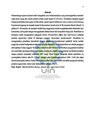 Novianti, Yunita (2025) Pengaruh Online Disinhibition Effect dan Self Control terhadap perilaku agresivitas verbal anggota “Komunitas Marah-Marah” di aplikasi X. Sarjana thesis, UIN Sunan Gunung Djati Bandung.