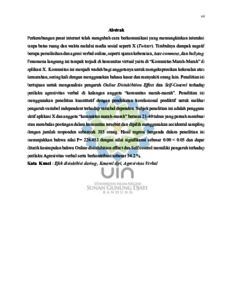 Uncontrolled Keywords: | Online Disinhibition Effect ; Self Control ; Verbal Aggression ; Efek disinhibisi daring ; Kontrol diri ; Agresivitas Verbal |