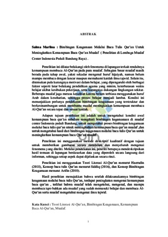 Marlina, Salma (2025) Bimbingan Keagamaan melalui Baca Tulis Qur'an untuk meningkatkan kemampuan Baca Qur'an Mualaf: Penelitian di Lembaga Mualaf Center Indonesia Indonesia Peduli Regional Bandung Raya. Sarjana thesis, UIN Sunan Gunung Djati Bandung.