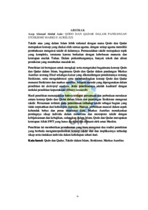 Uncontrolled Keywords: | Qodo dan Qadar; Takdir dalam Islam; Stoikisme; Markus Aurelius |