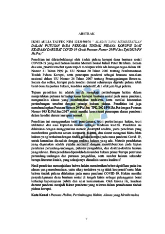 Taufik, Ikmi Auliah (2025) Alasan yang memberatkan dalam putusan pada perkara tindak pidana korupsi saat keadaan darurat Covid-19 : Studi putusan nomor 29/Pid.Sus.Tpk/2021/PN.Jkt.Pst. Sarjana thesis, UIN Sunan Gunung Djati.