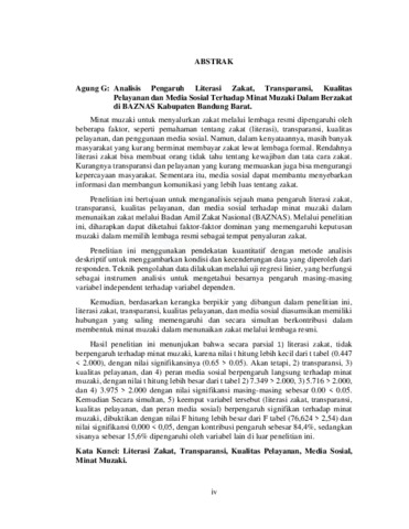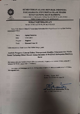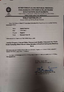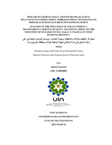 Gunawan, Agung (2025) Analisis pengaruh literasi zakat, transparansi, kualitas pelayanan dan media sosial terhadap minat muzaki dalam berzakat di Baznas Kabupaten Bandung Barat. Masters thesis, UIN Sunan Gunung Djati Bandung.