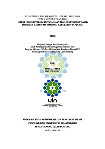 Fadli, Ismail (2025) Komunikasi transendental pelaku riyadhah untuk menguatkan jiwa: Studi fenomenologi pengalaman pelaku Riyadhah Salik Thariqah Kadisiyah Soreang kabupaten Bandung. Masters thesis, UIN Sunan Gunung Djati Bandung.