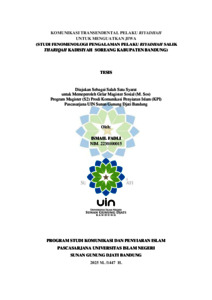 INDONESIA: Abstrak: Fenomena spiritual kontemporer menunjukkan adanya kebutuhan manusia untuk mendalami agama secara fundamental agar tidak kering dari makna batin. Hal ini tampak dalam praktik riyadhah yang dilakukan para salik (pencari spiritual) di Thariqah Kadisiyah, Soreang, Kabupaten Bandung. Masalah utama penelitian ini adalah bagaimana proses komunikasi transendental berlangsung dalam riyadhah, bagaimana para pelakunya memaknai pengalaman tersebut, serta bagaimana pengalaman itu memberi penguatan jiwa. Tujuan penelitian ini adalah memahami makna komunikasi transendental yang dialami para salik dalam riyadhah. Penelitian ini menggali motif, pengalaman batin, serta dinamika komunikasi spiritual yang terjadi dalam interaksi mereka dengan dimensi Ilahiyah. Dengan demikian, penelitian ini tidak hanya mendeskripsikan praktik riyadhah, tetapi juga menguraikan kontribusinya terhadap penguatan jiwa dan transformasi spiritual individu. Kerangka teori penelitian ini didasarkan pada fenomenologi Husserl dan Schutz yang menekankan pengalaman subjektif sebagai pusat pemahaman realitas. Teori komunikasi transendental ditempatkan dalam kerangka komunikasi spiritual dengan Tuhan sebagai mitra komunikasi. Konsep sufistik tentang nafs (jiwa), fana (lenyapnya ego), dan ma‘rifatunnafs (pengenalan diri sejati) digunakan untuk memperkuat analisis, sehingga penelitian ini berada di persimpangan studi komunikasi, fenomenologi, dan tasawuf. Metode penelitian yang digunakan adalah fenomenologi dengan pendekatan kualitatif. Data diperoleh melalui wawancara mendalam, observasi partisipan, dan dokumentasi praktik riyadhah. Analisis dilakukan melalui reduksi data, kategorisasi, dan interpretasi makna sesuai pendekatan fenomenologi untuk menggali pengalaman subjektif salik. Hasil penelitian menemukan empat hal utama: pertama, kesadaran transformatif yang mendorong olah jiwa akibat keterbatasan spiritual dan kekecewaan pada praktik formal; kedua, prasyarat komunikasi berupa kesadaran jiwa, pengalaman fana, dan kepasrahan total; ketiga, media komunikasi transendental berupa indra batin, gerakan tubuh, dzikir, mimpi simbolik, dan intuisi; keempat, tercapainya ma‘rifatunnafs melalui pertobatan, transformasi batin, dan peningkatan psikospiritual. Penelitian ini menyimpulkan bahwa riyadhah bukan hanya ritual spiritual, tetapi juga jalan komunikasi transendental yang efektif untuk transformasi jiwa. Praktik ini membentuk sistem komunikasi batiniah yang khas, berimplikasi pada penguatan iman dan kedamaian hati. Penelitian merekomendasikan agar kajian komunikasi lebih terbuka pada dimensi sufistik dan spiritual, serta menjadikan riyadhah sebagai model pengembangan kesehatan mental berbasis spiritualitas dalam konteks modern. ENGLISH: Modern spiritual trends reveal a human desire to deeply explore religion to prevent spiritual dryness. This is reflected in the riyadhah practices performed by salik (spiritual seekers) within the Kadisiyah Sufi Order in Soreang, Bandung Regency. The central focus of this research is to understand how transcendental communication takes place during riyadhah, how practitioners interpret these experiences, and how such experiences reinforce the soul. The aim of this study is to grasp the meaning of transcendental communication as experienced by salik during riyadhah. It investigates their motivations, inner experiences, and the dynamics of spiritual communication involved in their connection with the divine. Therefore, the study not only describes riyadhah practices but also explains their role in spiritual strengthening and personal spiritual transformation. The theoretical foundation of this research draws on the phenomenology of Husserl and Schutz, emphasizing subjective experience as key to understanding reality. The concept of transcendental communication is framed within spiritual communication with God as the interlocutor. Sufi ideas such as nafs (the soul), fana (ego dissolution), and ma‘rifatunnafs (self-knowledge) are incorporated to enrich the analysis, situating the study at the crossroads of communication studies, phenomenology, and Sufism. A phenomenological method with qualitative approach was employed, gathering data through in-depth interviews, participant observation, and documentation of riyadhah activities. The data were analyzed by reduction, categorization, and interpretation of meaning following phenomenological principles to explore the subjective experiences of the salik. The findings highlight four key points: first, a transformative awareness motivating spiritual practice due to spiritual limitations and dissatisfaction with formal religious practices; second, prerequisites for communication including spiritual awareness, the experience of impermanence, and complete surrender; third, transcendental communication channels such as inner senses, bodily movements, dhikr (remembrance), symbolic dreams, and intuition; fourth, achieving ma‘rifatunnafs through repentance, inner transformation, and psychospiritual growth. The study concludes that riyadhah is more than a spiritual ritual; it serves as an effective means of transcendental communication fostering spiritual transformation. This practice creates a distinctive inner communication system that strengthens faith and cultivates inner peace. The research suggests that communication studies should be more receptive to Sufi and spiritual perspectives and proposes adopting riyadhah as a model for spiritually based mental health development in contemporary settings. ARABIC: الملخص :تُظهر الظواهر الروحية المعاصرة حاجة الإنسان إلى تعميق دينه جذريًا لتجنب الحرمان من المعنى الباطني. ويتجلى ذلك في ممارسة "الرياضة" (التجمع الديني) التي يُجريها السالك (الباحثون الروحيون) في الطريقة القادسية، سوريانغ، مقاطعة باندونغ. ويتمحو