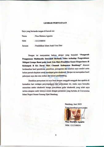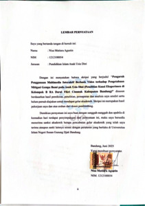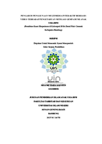Agustin, Nisa Mutiara (2025) Pengaruh penggunaan multimedia interaktif berbasis video terhadap pengetahuan mitigasi gempa bumi anak usia dini: Penelitian kuasi eksperimen di Kelas B RA Darul Fikri Cinunuk Kabupaten Bandung. Sarjana thesis, UIN Sunan Gunung Djati Bandung.
