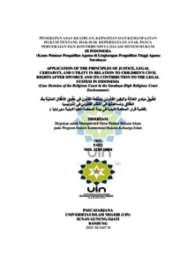Faiq, Faiq (2025) Penerapan asas keadilan, kepastian dan kemanfaatan hukum tentang hak-hak keperdataan anak pasca perceraian dan kontribusinya dalam sistem hukum di Indonesia: Kasus putusan Pengadilan Agama di lingkungan Pengadilan Tinggi Agama Surabaya. Doktoral thesis, UIN Sunan Gunung Djati Bandung.