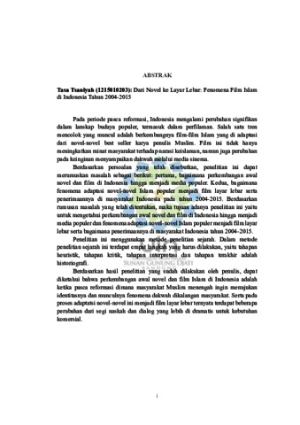 Tsaniyah, Tasa (2025) Dari novel ke layar lebar: Fenomena film Islam di Indonesia tahun 2004-2015. Sarjana thesis, UIN Sunan Gunung Djati Bandung.