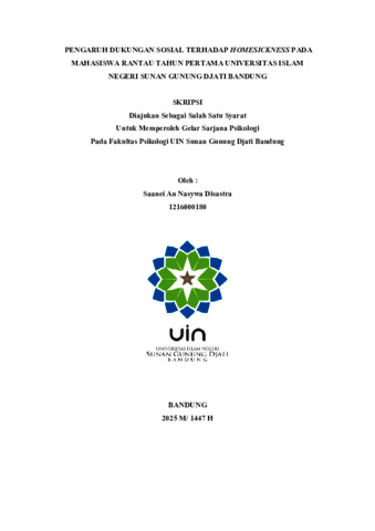 Disastra, Saanei An Nasywa (2025) Pengaruh dukungan sosial terhadap Homesickness pada mahasiswa rantau tahun pertama Universitas Islam Negeri Sunan Gunung Djati Bandung. Sarjana thesis, UIN Sunan Gunung Djati Bandung.