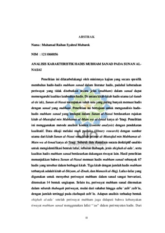 Mubarok, Muhamad Raihan Syahrul (2025) Analisis karakteristik hadis Mubham Sanad pada Sunan Al-Nasai (w. 915 M). Sarjana thesis, UIN Sunan Gunung Djati Bandung.