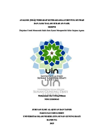 Hilman, Muhammad Zia Ul-Haq (2025) Analisis Tibaq terhadap ketidaksamaan bentuk Mufrad dan Jama' dalam Surah An-Nahl. Sarjana thesis, UIN Sunan Gunung Djati Bandung.