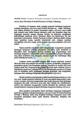 Penelitian ini bertujuan untuk mengkaji pengaruh bimbingan keagamaan terhadap peningkatan self-esteem santri Pondok Pesantren Al – Faqih 2 Bandung. latar elakang penelitian ini peneliti menemukan tingkat self-esteem yang rendah pada sebagian santri akibat tekanan akademik, sosial, dan ekspektasi tinggi dari lingkungan pesantren maupun keluarga. Kondisi ini berpotensi menghambat perkembangan psikologis santri, khususnya dalam hal kepercayaan diri dan kemampuan bersosialisasi. Pondok Pesantren Al-Faqih 2 Bandung dipilih sebagai lokasi penelitian karena memiliki karakteristik unik: sebagian santrinya menunjukkan self-esteem tinggi, namun terdapat juga yang mengalami self-esteem rendah. Tujuan penelitian ini adalah untuk mengukur dan menganalisis pengaruh bimbingan keagamaan terhadap peningkatan self-esteem santri. Penelitian ini diharapkan dapat memberikan manfaat akademis bagi pengembangan ilmu bimbingan keagamaan, serta manfaat praktis bagi pelaksanaan program bimbingan yang dapat membantu santri mengatasi perasaan negatif dan membangun sikap positif terhadap diri sendiri. Landasan teoritis penelitian mengacu pada konsep religiusitas menurut Glock dan Stark yang meliputi lima dimensi: keyakinan, peribadatan, penghayatan, pengetahuan agama, serta konsekuensi perilaku. Sementara itu, konsep self-esteem mengacu pada teori Coopersmith yang mencakup empat aspek: kekuatan (power), keberartian (significance), kebajikan (virtue), dan kemampuan (competence). Kedua teori ini digunakan untuk membangun kerangka konseptual yang menjelaskan hubungan antara bimbingan keagamaan dan peningkatan self-esteem. Metode penelitian yang digunakan adalah kuantitatif dengan desain one-shot case study. Sampel penelitian berjumlah 88 santri yang dipilih dengan teknik simple random sampling. Instrumen pengumpulan data berupa kuesioner skala bimbingan keagamaan dan skala self-esteem yang telah diuji validitas dan reliabilitasnya. Analisis data dilakukan menggunakan statistik deskriptif dan inferensial untuk menguji hipotesis mengenai pengaruh bimbingan keagamaan terhadap self-esteem. Hasil penelitian menunjukkan bahwa bimbingan keagamaan berpengaruh positif dan signifikan terhadap peningkatan self-esteem santri di Pondok Pesantren Al-Faqih 2 Bandung. Santri yang mengikuti bimbingan keagamaan secara rutin mengalami peningkatan dalam aspek kekuatan, keberartian, kebajikan, dan kemampuan.