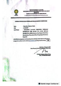Najiha, Najmadhya Samrotun (2025) Pengaruh layanan parenting terhadap penerimaan diri orang tua anak dengan disabilitas: Penelitian pada program Rehabilitasi Bersumberdaya Masyarakat di Desa Manggungjaya Kecamatan Rajapolah. Sarjana thesis, UIN Sunan Gunung Djati Bandung.
