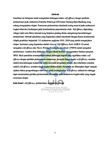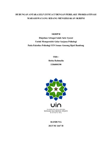 Rahmalia, Sheha (2025) Hubungan antara Self Efficacy dengan perilaku prokrastinasi mahasiswa yang sedang mengerjakan skripsi. Sarjana thesis, UIN Sunan Gunung Djati Bandung.