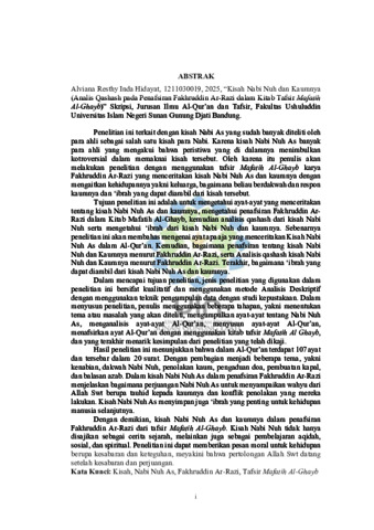 Hidayat, Alviana Resthy Inda (2025) Kisah Nabi Nuh dan kaumnya: Analisis qashash pada penafsiran Fakhruddin Ar-Razi dalam kitab Tafsir Mafatih Al-Ghayb. Diploma thesis, UIN Sunan Gunung Djati Banduung.