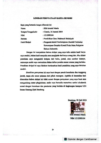 Ismatul Maula, Sifa (2025) Pengaruh model pembelajaran sinektik terhadap kemampuan berpikir kreatif pada mata pelajaran Bahasa Indonesia. Sarjana thesis, UIN Sunan Gunung Djati Bandung.
