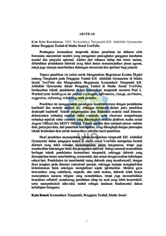 Kurniawan, Kun Kun (2025) Komunikasi terapeutik KH. Abdullah Gymnastiar dalam pengajian tauhid di media sosial Youtube. Masters thesis, UIN Sunan Gunung Djati Bandung.