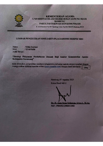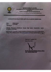 Septiani, Mitha (2025) Strategi pelayanan pendaftaran jemaah haji kantor Kementerian Agama Kabupaten Karawang. Sarjana thesis, UIN Sunan Gunung Djati Bandung.