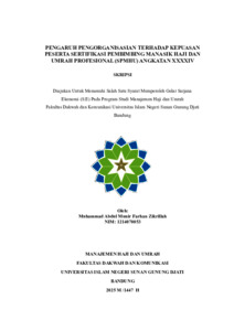 Sertifikasi Pembimbing Manasik Haji dan Umrah Profesional (SPMHU) merupakan program strategis dalam meningkatkan kompetensi pembimbing ibadah haji dan umrah. Seiring meningkatnya jumlah jemaah dan persaingan antar penyelenggara, kualitas pengorganisasian menjadi faktor penting yang menentukan tingkat kepuasan peserta. Oleh karena itu, penelitian ini dilakukan untuk menganalisis pengaruh pengorganisasian terhadap kepuasan peserta SPMHU Angkatan XXXIV.Penelitian ini bertujuan untuk menguji pengaruh pengorganisasian terhadap kepuasan peserta. Secara Teoritis, penelitian ini menggunakan teori Henri Fayol (1916) karna berfokus pada Struktur dan Proses juga elevan untuk menganalisis pengorganisasian SPMHU , lalu pada teori kepuasan menggunakan Servqual (1988) digunakan karena fokusnya pada pengukuran kualitas layanan yang dirasakan peserta, sehingga tepat untuk menilai kepuasan terhadap aspek pengajaran, fasilitas, dan pengalaman keseluruhan selama mengikuti SPMHU, Data dikumpulkan dari 38 responden melalui kuesioner daring Google Form dengan skala Likert, menggunakan teknik simple random sampling. Analisis data melibatkan uji validitas, reliabilitas, asumsi klasik (normalitas, multikolinearitas, heteroskedastisitas), regresi linear sederhana, uji determinasi (R2), uji F, dan uji T, seluruhnya diolah menggunakan software SPSS versi 26. Hasil penelitian secara konsisten menunjukkan bahwa pengorganisasian berpengaruh signifikan dan positif terhadap kepuasan peserta. Uji regresi linear sederhana menghasilkan nilai signifikansi 0.000 (p<0.05), menegaskan pengaruh yang kuat secara statistik. Koefisien determinasi (R2) sebesar 0.845 berarti 84.5% variasi kepuasan peserta dijelaskan oleh kualitas pengorganisasian, menyoroti kontribusi dominan variabel ini. Koefisien regresi positif (0.925) menunjukkan peningkatan pengorganisasian secara proporsional meningkatkan kepuasan. Seluruh uji asumsi klasik terpenuhi, memperkuat validitas statistik. Adapun kesimpulam ini menegaskan bahwa pengorganisasian merupakan fungsi efektif dalam kunci kepuasan dan pemenuhan ekspektasi peserta pelatihan, Saran dalam penelitian ini selain dari keberhasilan pengorganisasian yaitu faktor-faktor pendukung lain diluar penelitian ini, seperti planning, staffing, actuating, dan controlling, merupakan fungsi yang memiliki pengaruh terhadap kepuasan peserta.