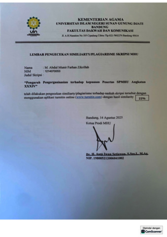 Zikrillah, Munir Farhan (2025) Pengaruh pengorganisasian terhadap kepuasan peserta SPMHU angkatan XXXIV. Sarjana thesis, UIN Sunan Gunung Djati Bandung.