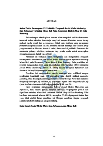 Jayanagara, Azhar Patria (2025) Pengaruh social media marketing dan influencer terhadap minat beli pada konsumen TikTok Shop di Kota Bandung. Sarjana thesis, UIN Sunan Gunung Djati Bandung.