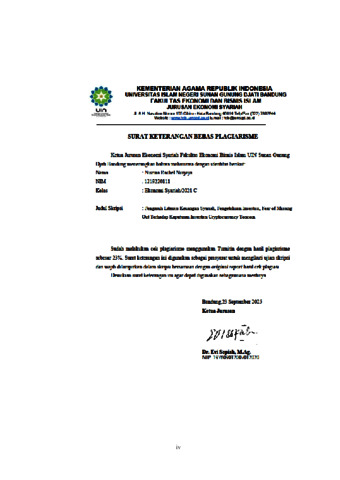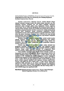 Nurjaya, Nisrina Rachel (2025) Pengaruh literasi keuangan syariah, pengetahuan investasi, dan Fear of Missing Out terhadap keputusan investasi Cryptocurrency Toncoin. Sarjana thesis, UIN Sunan Gunung Djati Bandung.