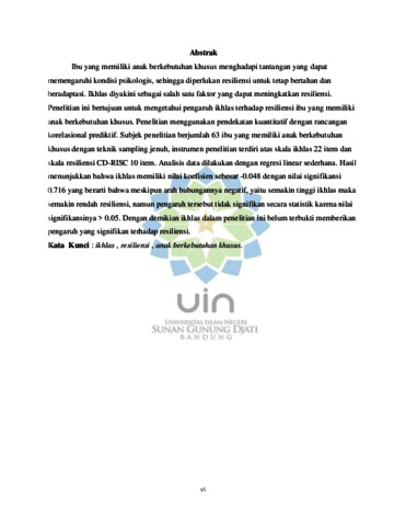 Wahyuningsih, Dwi Sri (2025) Pengaruh ikhlas terhadap resiliensi pada ibu yang memiliki anak berkebutuhan khusus. Sarjana thesis, UIN Sunan Gunung Djati Bandung.