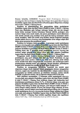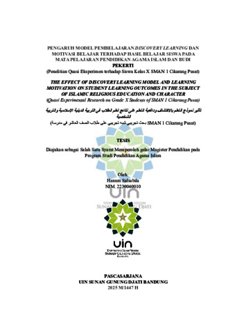 Salsabila, Hanum (2025) Pengaruh model pembelajaran Discovery Learning dan motivasi belajar terhadap hasil belajar siswa pada mata pelajaran Pendidikan Agama Islam dan Budi Pekerti: Penelitian quasi eksperimen terhadap siswa kelas X SMAN 1 Cikarang Pusat. Masters thesis, UIN Sunan Gunung Djati Bandung.