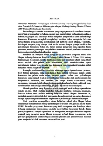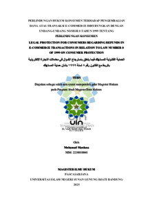 Maulana, Muhamad (2025) Perlindungan hukum konsumen terhadap pengembalian dana atas transaksi e-Commerce dihubungkan dengan Undang-undang nomor 8 tahun 1999 tentang perlindungan konsumen. Masters thesis, UIN Sunan Gunung Djati Bandung.