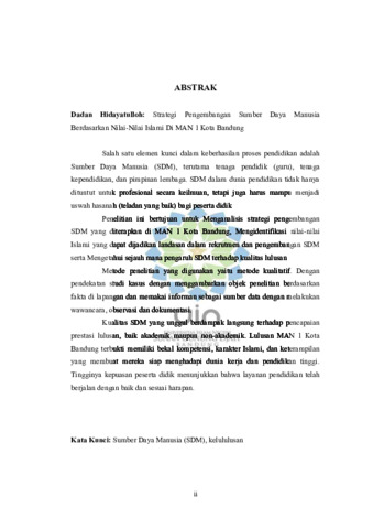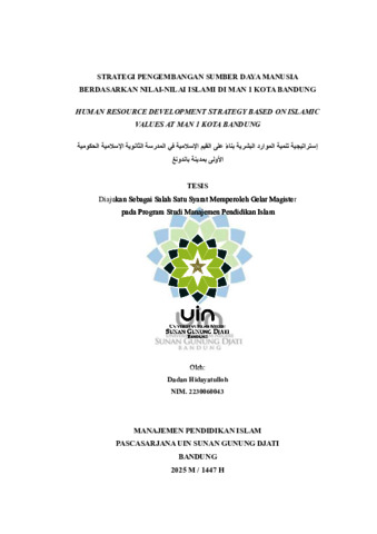 Hidayatulloh, Dadan (2025) Strategi pengembangan sumber daya manusia berdasarkan nilai-nilai Islami di MAN 1 Kota Bandung. Masters thesis, UIN Sunan Gunung Djati Bandung.