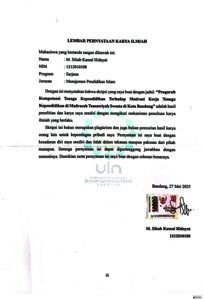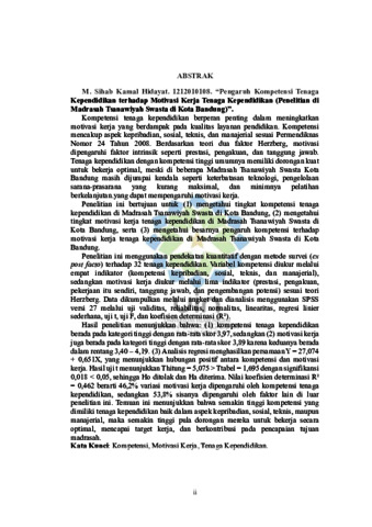 Hidayat, M. Sihab Kamal (2025) Pengaruh kompetensi tenaga kependidikan terhadap motivasi kerja tenaga kependidikan: Penelitian di Madrasah Tsanawiyah Swasta di Kota Bandung. Sarjana thesis, UIN Sunan Gunung Djati Bandung.
