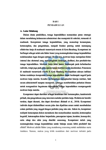 Pengaruh kompetensi tenaga kependidikan terhadap motivasi kerja tenaga kependidikan: Penelitian di Madrasah Tsanawiyah Swasta di Kota Bandung