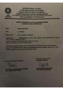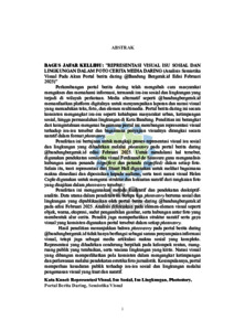 INDONESIA: Perkembangan portal berita daring telah mengubah cara masyarakat mengakses dan memahami informasi, termasuk isu-isu sosial dan lingkungan yang terjadi di wilayah perkotaan. Media alternatif seperti @bandungbergerak.id memanfaatkan platform digitalnya untuk menyampaikan laporan dan narasi visual yang memadukan teks, foto, dan elemen multimedia. Portal berita daring ini secara konsisten mengangkat isu-isu seperti kehidupan masyarakat urban, ketimpangan sosial, hingga permasalahan lingkungan di Kota Bandung. Penelitian ini berangkat dari keingintahuan mengenai bagaimana portal ini membangun representasi visual terhadap isu-isu tersebut dan bagaimana penyajian visualnya dirangkai secara naratif dalam format photostory. Penelitian ini bertujuan untuk mengkaji proses representasi visual isu sosial dan lingkungan yang dihadirkan melalui photostory pada portal berita daring @bandungbergerak.id edisi Februari 2025. Untuk mendalami hal tersebut, digunakan pendekatan semiotika visual Ferdinand de Saussure guna menganalisis hubungan antara penanda (signifier) dan petanda (signified) dalam setiap foto. Selain itu, teori representasi dari Stuart Hall digunakan untuk melihat bagaimana makna dimediasi dan diposisikan kepada audiens, serta teori narasi visual Helen Caple digunakan untuk mengurai struktur dan kekuatan naratif dari rangkaian foto yang disajikan dalam photostory tersebut. Penelitian ini menggunakan metode kualitatif dan pendekatan deskriptif-analitis. Data utama dalam penelitian ini berupa tiga photostory bertema sosial dan lingkungan yang dipublikasikan oleh portal berita daring @bandungbergerak.id pada edisi Februari 2025. Analisis difokuskan pada elemen-elemen visual seperti objek, warna, ekspresi, sudut pengambilan gambar, serta hubungan antar foto yang membentuk alur cerita. Peneliti juga memperhatikan struktur naratif serta gaya visual yang konsisten digunakan portal tersebut dalam setiap photostory. Hasil penelitian menunjukkan bahwa photostory pada portal berita daring @bandungbergerak.id tidak hanya berfungsi sebagai sarana penyampaian informasi visual, tetapi juga sebagai media artikulasi makna sosial yang kompleks. Representasi yang dihadirkan cenderung berpihak pada kelompok rentan, ruang-ruang publik yang terabaikan, serta wacana lingkungan yang kritis. Narasi visual yang dibangun memperlihatkan pola konsisten dalam mengangkat ketimpangan dan perlawanan melalui pendekatan estetika foto jurnalistik. Kesimpulannya, portal memperluas kesadaran publik terhadap isu-isu sosial dan lingkungan melalui pengemasan visual yang kuat dan naratif. ENGLISH: The growth of online news portals has transformed the way people access and interpret information, including social and environmental issues in urban areas. Alternative media such as @bandungbergerak.id utilize their digital platforms to deliver reports and visual narratives that combine text, photography, and multimedia elements. This online news portal consistently covers topics such as urban life, social inequality, and environmental problems in Bandung City. This research stems from the curiosity to explore how the portal constructs visual representations of these issues and how such visuals are arranged narratively in photostory format. This study aims to examine the process of visual representation of social and environmental issues presented through photostories published by the online news portal @bandungbergerak.id in its February 2025 edition. Ferdinand de Saussure’s visual semiotics was applied to analyze the relationship between signifiers and signifieds in each photo. Additionally, Stuart Hall’s representation theory was used to examine how meaning is mediated and positioned toward the audience, while Helen Caple’s visual narrative theory was applied to unpack the structure and narrative strength of the photostory sequences. This research employed a qualitative method with a descriptive-analytical approach. The primary data consist of three photostories with social and environmental themes published by the online news portal @bandungbergerak.id in February 2025. The analysis focused on visual elements such as objects, colors, expressions, camera angles, and the relationships between photos that create a coherent storyline. The researcher also examined the narrative structure and consistent visual styles employed by the portal in each photostory. The findings indicate that the photostories on the online news portal @bandungbergerak.id serve not only as a medium for delivering visual information but also as a space for articulating complex social meanings. The representations tend to advocate for marginalized groups, neglected public spaces, and critical environmental discourse. The visual narratives reveal a consistent pattern of addressing inequality and resistance through the aesthetics of photojournalism. In conclusion, online news portals such as @bandungbergerak.id play a strategic role in expanding public awareness of social and environmental issues through strong and well-crafted visual storytelling.