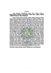 Kepala keluarga dalam komunitas Jamaah Tabligh memegang peranan penting dalam menanamkan nilai-nilai keislaman dan membina stabilitas sosial melalui serangkaian aktivitas dakwah seperti khuruj, jaulah, bayan, ta‘lim, dan khidmat. Tanggung jawab yang mereka emban tidak hanya bersifat ekonomi, tetapi juga mencakup pembinaan spiritual anggota keluarga serta partisipasi aktif dalam kegiatan keagamaan berbasis komunitas. Penelitian ini bertujuan untuk menggali bentuk-bentuk peran sosial keagamaan yang dijalankan oleh kepala keluarga, strategi mereka dalam membimbing secara spiritual di ranah domestik, serta cara mereka menginternalisasi ajaran Islam dan merespons tantangan dakwah yang dihadapi. Penelitian ini menggunakan jenis penelitian kualitatif dan metode dalam menyampaikan data bersifat studi kasus, sedangkan pendekatan yang digunakan yaitu menggunakan ilmu sosiologi Agama. Sumber data berjumalah 10 orang dari Jamaah Tabligh, teknik pengambilan data dilakukan melalui obsevasi lapangan, wawancara dan dokumentasi. Analisis teoritis mengacu pada kerangka Tindakan Sosial dari Max Weber untuk memahami orientasi makna dalam tindakan keagamaan. Hasil temuan dilapangan penelitian ini menunjukkan bahwa kepala keluarga Jamaah Tabligh berperan sebagai pembimbing spiritual dan sosial, baik di lingkungan rumah maupun komunitas. Internalisasi nilai Islam dilakukan melalui keteladanan dan rutinitas keagamaan yang membentuk kedisiplinan anak. Tantangan seperti pengaruh media sosial dan beban peran ganda diatasi dengan pendekatan kasih sayang, pembatasan teknologi, dan dukungan komunitas. Meski keluarga berfungsi sebagai pusat pembinaan spiritual, terdapat isu subordinasi perempuan dan eksklusivitas sosial. Secara keseluruhan, kepala keluarga menjadi agen dakwah mikro yang membentuk generasi religius dan peduli sosial.