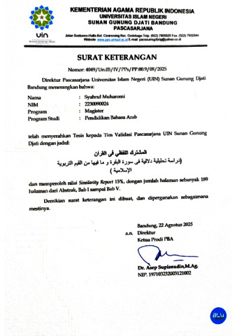 Muharomi, Syahrul (2025) المشترك اللفظي فى القرآن ( دراسة تحليلية دلالية فى سورة البقرة و ما فيها من القيم التربوية الإسلامية). Masters thesis, UIN Sunan Gunung Djati Bandung.