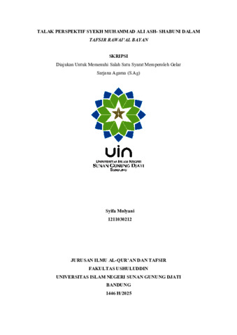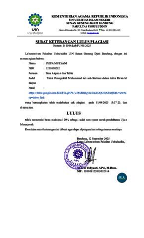 Mulyani, Syifa (2025) Talak Persepektif Syekh Muhammad Ali Ash- Shabuni dalam Tafsir Rawai'al Bayan. Sarjana thesis, UIN Sunan Gunung Djati Bandung.