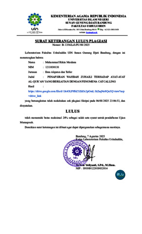 Maulana, Muhammad Rikza (2025) Penafsiran Wahbah Zuhaili terhadap ayat-ayat Al-Qur'an yang berkaitan dengan fenomena Catcalling. Sarjana thesis, UIN Sunan Gunung Djati Bandung.