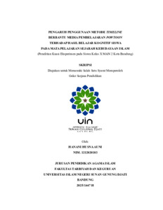Auni, Hanani Husna (2025) Pengaruh penggunaan metode timeline berbantu media pembelajaran powtoon terhadap hasil belajar kognitif siswa pada mata pelajaran Sejarah Kebudayaan Islam: Penelitian kuasi eksperimen pada siswa kelas X MAN 2 Kota Bandung. Sarjana thesis, UIN Sunan Gunung Djati Bandung.