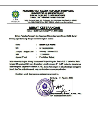 Divisions: | Fakultas Tarbiyah dan Keguruan > Program Studi Pendidikan Biologi |
