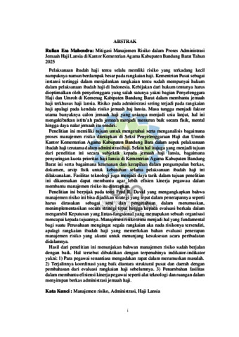 Mahendra, Rulian Esa (2025) Mitigasi risiko dalam proses administrasi jemaah haji lansia di PHU Kemenag Kabupaten Bandung Barat tahun 2025. Sarjana thesis, UIN Sunan Gunung Djati Bandung.