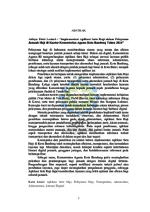 Pelayanan haji di Indonesia membutuhkan sistem yang tertata dan efisien mengingat besarnya jumlah jamaah setiap tahun. Dalam era digital, Kementerian Agama RI mengembangkan Aplikasi Satu Haji sebagai inovasi layanan publik berbasis teknologi untuk mempermudah akses informasi, administrasi, pembinaan, serta layanan transportasi dan akomodasi bagi jamaah. Kota Bandung, sebagai salah satu daerah dengan jumlah jamaah haji besar di Jawa Barat, menjadi lokasi strategis untuk melihat implementasi aplikasi ini. Penelitian ini bertujuan untuk mengetahui implementasi Aplikasi Satu Haji dalam tiga aspek utama, yaitu: (1) pelayanan administrasi, (2) pelayanan pembinaan, dan (3) pelayanan transportasi serta akomodasi jamaah haji di Kota Bandung. Ketiga aspek tersebut dipilih karena mewakili keseluruhan layanan yang diberikan Kementerian Agama kepada jamaah sejak pendaftaran hingga pelaksanaan ibadah di Tanah Suci. Landasan teoritis yang digunakan meliputi konsep implementasi kebijakan publik (Van Meter & Van Horn), TAM (Davis), teori teknologi informasi (Haag & Keen), serta teori pelayanan publik menurut Moenir dan Sampara Lukman. Kerangka teori ini digunakan untuk memahami hubungan antara teknologi, proses pelayanan, dan penerimaan pengguna dalam konteks layanan haji berbasis digital. Metode penelitian yang digunakan adalah pendekatan kualitatif studi kasus dengan teknik wawancara mendalam, observasi, dan dokumentasi. Hasil penelitian menunjukkan bahwa pada aspek administrasi, Aplikasi Satu Haji mempermudah proses pendaftaran, pembatalan, pelimpahan porsi, klaim asuransi, hingga pengecekan estimasi keberangkatan. Pada aspek pembinaan, aplikasi menyediakan materi manasik, doa-doa ibadah, dan jadwal lontar jumrah. Pada aspek transportasi dan akomodasi, aplikasi memberikan informasi terkait transportasi dan akomodasi di dalam negeri dan luar negeri. Kesimpulan dari penelitian ini adalah bahwa implementasi Aplikasi Satu Haji di Kota Bandung telah meningkatkan efisiensi, transparansi, dan kemudahan layanan haji. Meskipun demikian, masih terdapat kendala seperti keterbatasan literasi digital jamaah, gangguan jaringan, dan ketidaksesuaian informasi pada beberapa fitur. Sebagai saran, Kementerian Agama Kota Bandung perlu meningkatkan pelatihan dan pendampingan bagi jamaah dengan literasi digital terbatas. Pengembangan fitur responsif, seperti notifikasi otomatis terkait jadwal atau perubahan layanan, juga dapat meningkatkan pengalaman pengguna, sehingga Aplikasi Satu Haji dapat memberikan layanan yang lebih optimal dan efisien bagi seluruh jamaah.