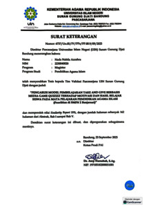 Az Zahra, Nada Nabila (2025) Pengaruh model pembelajaran Take and Give berbasis media game Quizizz terhadap motivasi dan hasil belajar siswa pada mata pelajaran Pendidikan Agama Islam: Penelitian di SMPN 2 Banjarsari. Masters thesis, UIN Sunan Gunung Djati Bandung.
