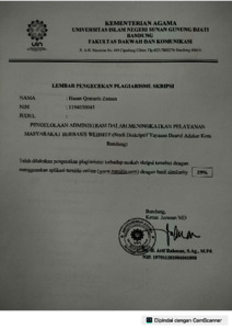 Zaman, Hasan Qomaris (2023) Pengelolaan administrasi dalam meningkatkan pelayanan masyarakat berbasis website: Studi deskriptif Yayasan Daarul Adzkar Kota Bandung. Sarjana thesis, UIN Sunan Gunung Djati Bandung.