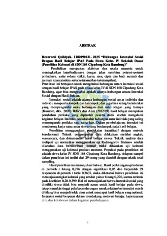 Qolbiyah, Dzurrotul (2025) Hubungan interaksi sosial dengan hasil belajar IPAS pada siswa kelas IV sekolah dasar: Penelitian kolerasi di SDN 168 Cipadung Kota Bandung. Sarjana thesis, UIN Sunan Gunung Djati Bandung.