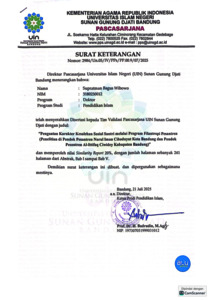 Wibowo, Supratman Bagus (2025) Penguatan karakter kesalehan sosial santri melalui program Filantropi Pesantren : Penelitian di Pondok Pesantren Nurul Iman Cibaduyut Kota Bandung dan Pondok Pesantren Al-Ittifaq Ciwidey Kabupaten Bandung. Doktoral thesis, UIN Sunan Gunung Djati.