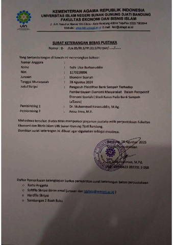 Burhanudin, Syifa Ulya (2024) Pengaruh efektifitas bank sampah terhadap pemberdayaan ekonomi masyarakat dalam perspektif ekonomi syariah: Studi kasus pada Bank Sampah Latanza. Sarjana thesis, UIN Sunan Gunung Djati Bandung.